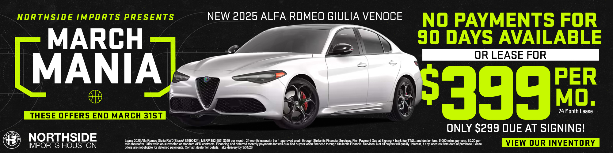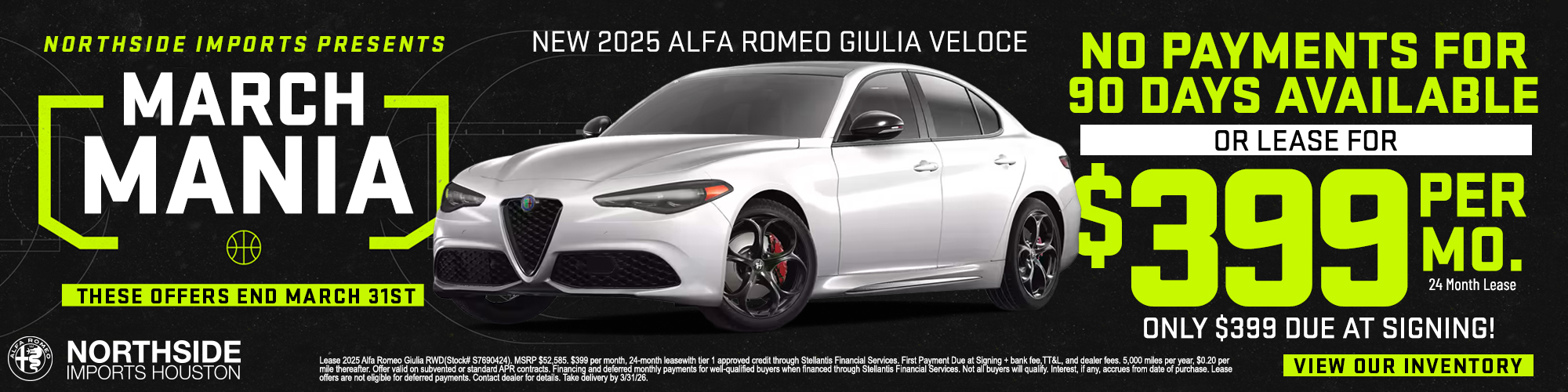 Experience the epitome of Italian luxury and performance at Northside Alfa Romeo of Houston. Visit us today to test drive your dream Alfa Romeo or contact us to learn more about our vehicles and services. Your journey towards owning an Italian masterpiece begins here, at the leading Alfa Romeo dealership in Spring, TX.