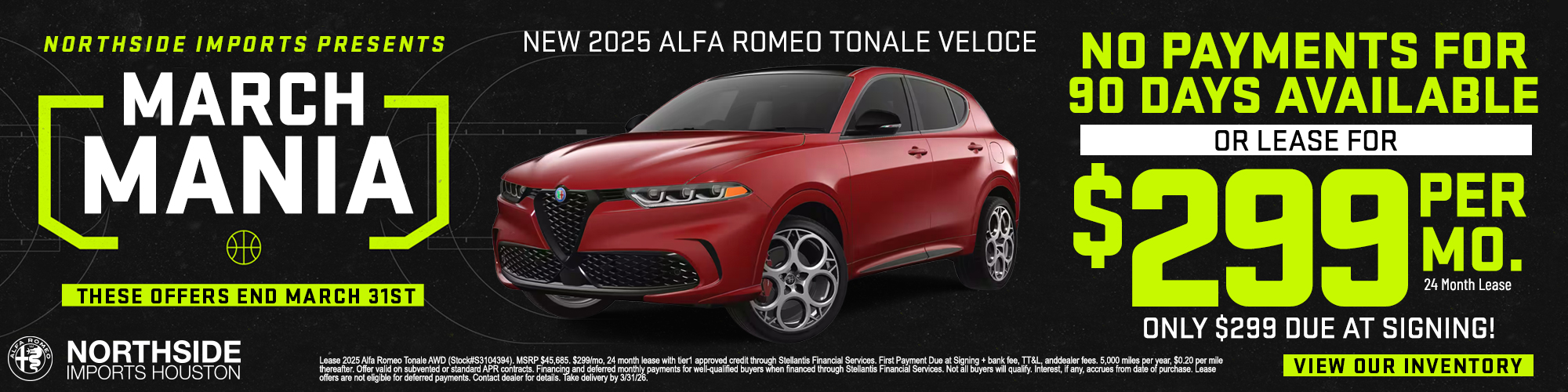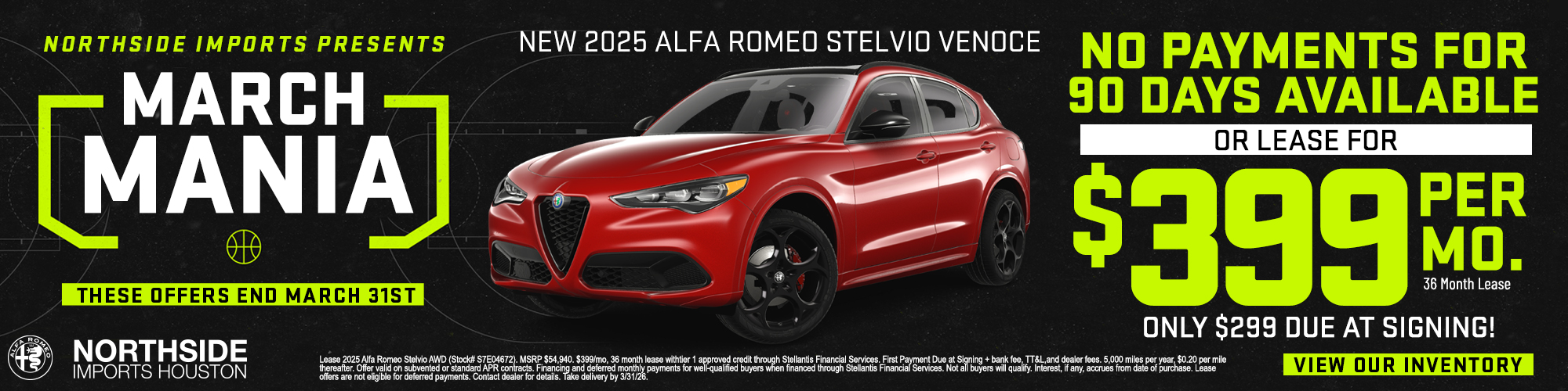 Northside Alfa Romeo of Houston in Spring-The Woodlands, TX caters to the needs of each individual customer with premium customer service. We know that you have high expectations, and as a car dealer we enjoy the challenge of meeting and exceeding those standards each and every time. Allow us to demonstrate our commitment to excellence!