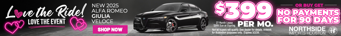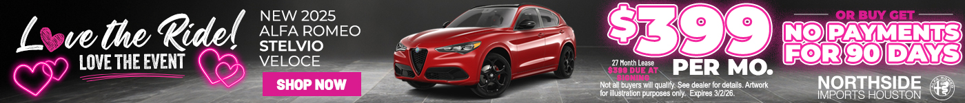 Immerse yourself in the world of Alfa Romeo at Northside Alfa Romeo of Houston. Visit our showroom in Spring, TX, to explore our full lineup of new Alfa Romeo vehicles, experience our dedicated customer service, and find out what makes us the leading Alfa Romeo dealership in the area. Whether you’re in the market for a new vehicle or need expert care for your current one, Northside Alfa Romeo of Houston is your trusted partner for all things Alfa Romeo.