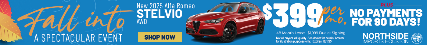 Immerse yourself in the world of Alfa Romeo at Northside Alfa Romeo of Houston. Visit our showroom in Spring, TX, to explore our full lineup of new Alfa Romeo vehicles, experience our dedicated customer service, and find out what makes us the leading Alfa Romeo dealership in the area. Whether you’re in the market for a new vehicle or need expert care for your current one, Northside Alfa Romeo of Houston is your trusted partner for all things Alfa Romeo.