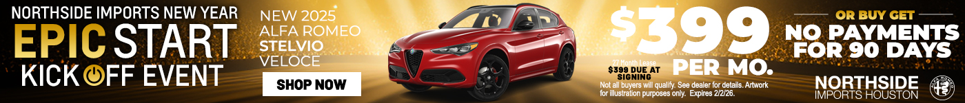 Immerse yourself in the world of Alfa Romeo at Northside Alfa Romeo of Houston. Visit our showroom in Spring, TX, to explore our full lineup of new Alfa Romeo vehicles, experience our dedicated customer service, and find out what makes us the leading Alfa Romeo dealership in the area. Whether you’re in the market for a new vehicle or need expert care for your current one, Northside Alfa Romeo of Houston is your trusted partner for all things Alfa Romeo.