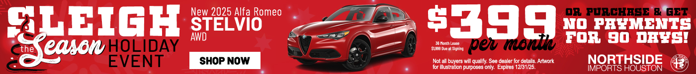 Immerse yourself in the world of Alfa Romeo at Northside Alfa Romeo of Houston. Visit our showroom in Spring, TX, to explore our full lineup of new Alfa Romeo vehicles, experience our dedicated customer service, and find out what makes us the leading Alfa Romeo dealership in the area. Whether you’re in the market for a new vehicle or need expert care for your current one, Northside Alfa Romeo of Houston is your trusted partner for all things Alfa Romeo.